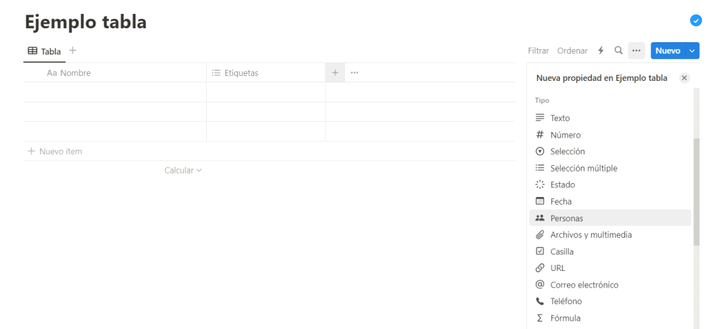 Añade propiedades que ayudan a enriquecer la información de tus tablas según tus casos. De esta manera puedes crear un planificador de estudio, una lista de contactos, un calendario y muchas cosas más.