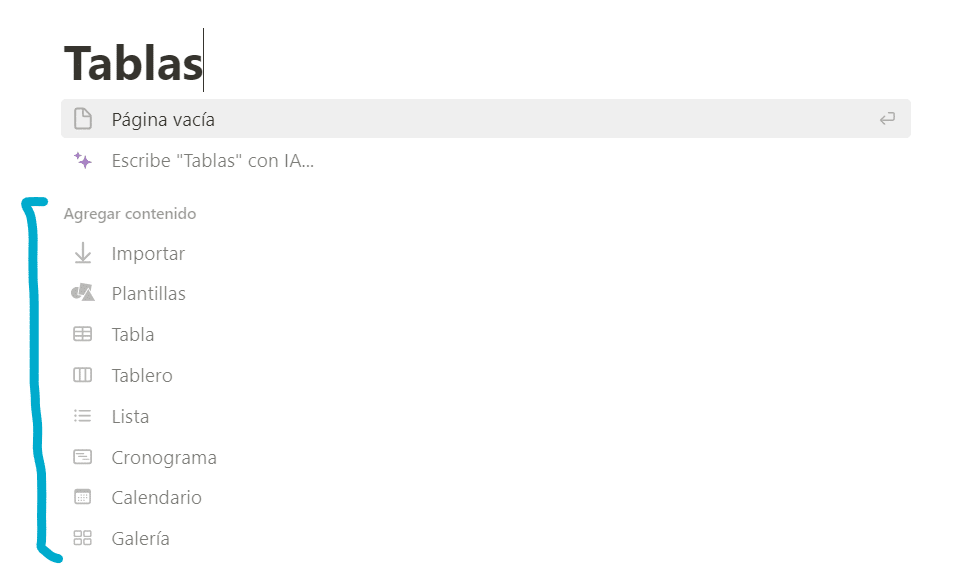 - Abre Notion y selecciona la página o base de datos donde deseas crear la tabla.